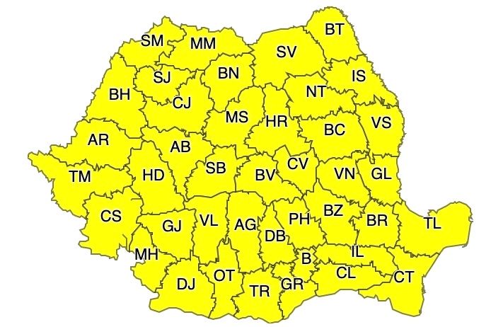ATENȚIONARE METEOROLOGICĂ - COD GALBEN