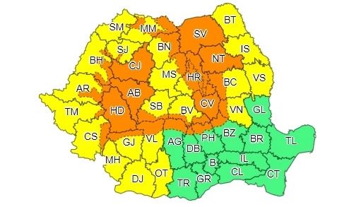 În intervalul menționat, local în zonele montane, în vestul Transilvaniei și în nord-vestul Moldovei, vor fi perioade cu averse ce vor avea și caracter torențial, frecvente descărcări electrice, intensificări ale vântului (rafale de peste 80 km/h), vijelii și grindină. În intervale scurte de timp (1-3 ore) sau prin acumulare, cantitățile de apă vor fi de 30...40 l/mp și izolat de peste 50...60 l/mp.