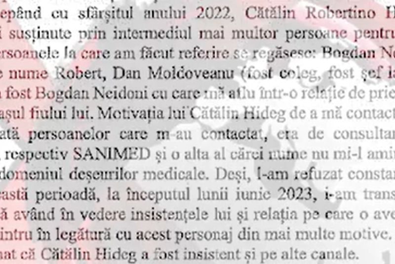 Cătălin Hideg: "Dl.Coldea spune că eu m-am dus la Dumitru Dumbravă înainte de a mă întâlni cu dânsul. Deci prima dată m-am întâlnit cu Florian Coldea la un restaurant, după care dânsul i-a dat OK-ul lui Neidoni, Neidoni l-a sunat pe Tocaci, care a vorbit cu Dumbravă care a stabilit prima întâlnire (cu Hideg - n.r.)".