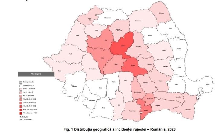 Numărul total de cazuri confirmate cu rujeolă în România raportate de la 01.01.2023 până la data de 30.11.2023 este 1855. S-au înregistrat cazuri de rujeolă în 29 de județe și în Municipiul București