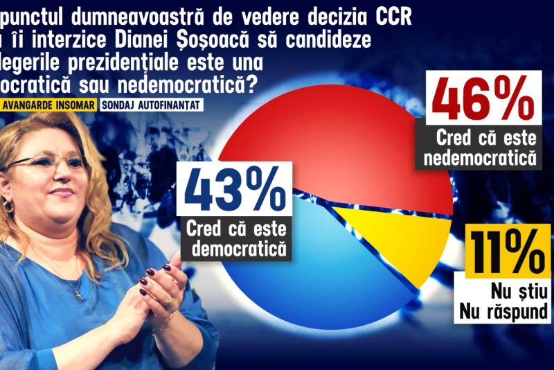 Sondajul Avangarde-INSOMAR a mai tratat și respingerea candidaturii Dianei Șoșoacă. Potrivit respondenților, decizia Curții Constituționale este nedemocratică.